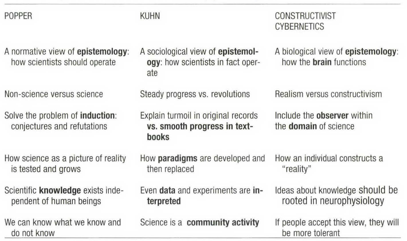 Stuart UMPLEBY elaborated the following comparative table between three quite different contemporaneous approaches (1990, p.116):